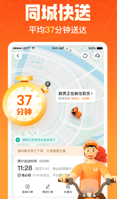 以高性价比和多样化服务著称,UU跑腿不仅提供常规的外卖与快递代送,还拓展了同城代办业务,如代买商品、排队办事、遛狗搬家等个性化需求也能轻松实现。平台对骑手实行严格审核制度,确保服务质量与安全可靠性。响应速度快,平均一分钟内接单,十分钟上门取件,同城范围内最快35分钟送达,极大提升了时间利用率。