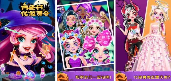 在这款游戏中玩家将会成为一个万圣节中被他人邀请去参加化妆舞会的女孩子。因此玩家为了能在舞会上惊艳大家,还需要给自己打扮一个可爱而又不失万圣节风格的妆容。因此玩家需要做的就是拖动屏幕上的化妆品来给我们的角色今天化妆,并且玩家可以自由的选择每个化妆品所使用的用量,即使是同一个化妆品,但是用量如果不同的话也会带来不一样的效果哦。