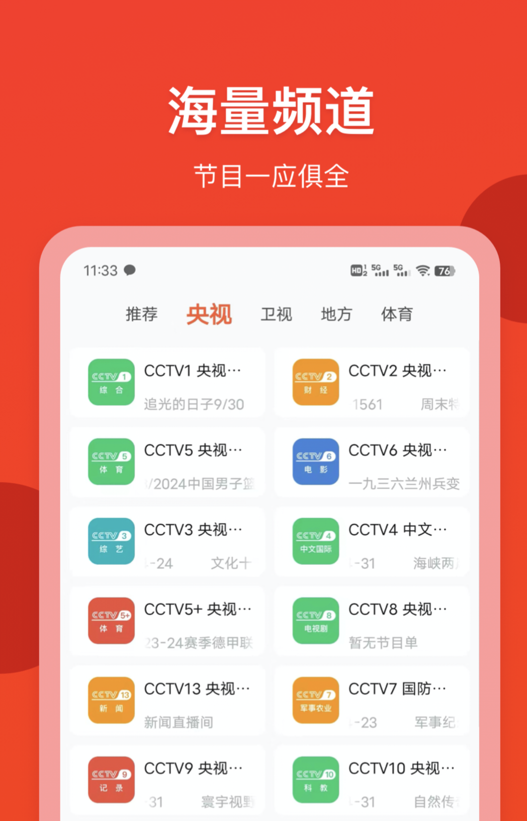专为喜爱实时节目的用户打造,覆盖中央台、各大卫视及地方频道的直播信号,提供完整的节目单信息。无论是新闻播报、体育赛事还是热播综艺节目,均可实时在线观看,多频道自由切换,带来便捷的移动电视体验。