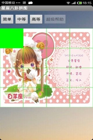游戏是以星座为主题的拼图游戏,在游戏中,大家还可以了解星座的八卦,享受游戏的趣味,将拼图的玩法与星座相结合,来了解星座的知识,把相同星座的图案拼在一起,放在正确的位置,呈现一张完整的星座简介,游戏中也分为三个不同的等级,可以自行的选择难度,整体的玩法都是非常好,可以帮助大家来开发智慧。