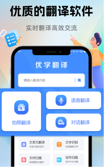 无论是处理英文文件还是参与国际对话,该应用均能胜任。集成语音转文字、实时翻译等功能,配合摄像头使用可即时将拍摄内容翻译为目标语言,提升跨语言信息处理效率。