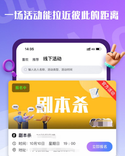 派派是同城交友平台,当下很多年轻人都在使用,经常看快本的小伙伴都了解这款软件,因为这是由该综艺节目推荐的社交软件,现在玩法全面升级新增众多功能,比如农场。可和其他好友共同互动,另外还有全名答题模式,剧本内容让和他人聊天时更开心,现在注册用户已经超过几亿人,其中可遇到很多志同道合的好友,因此值得推荐。
