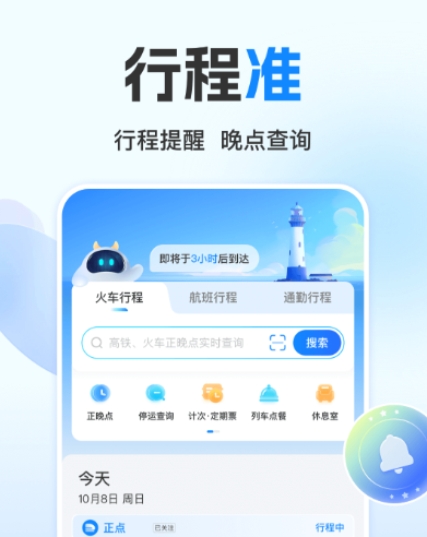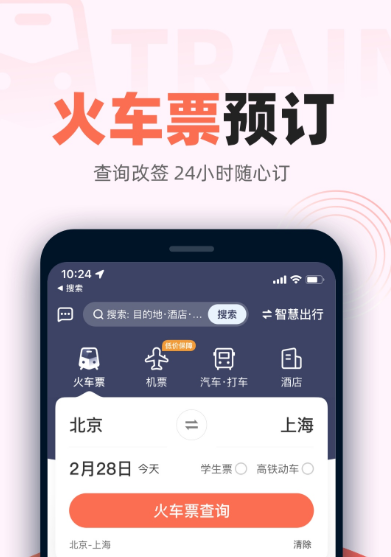 你的各种出行需求都可以在这个软件中得到解决,火车票支持24小时随时预定购买,而且退改无忧。火车的早晚点以及是否停运都额能及时知道,并且有余票监控能够及时的候补购票。能为用户能自动匹配最优换乘方案,解决中转难题。