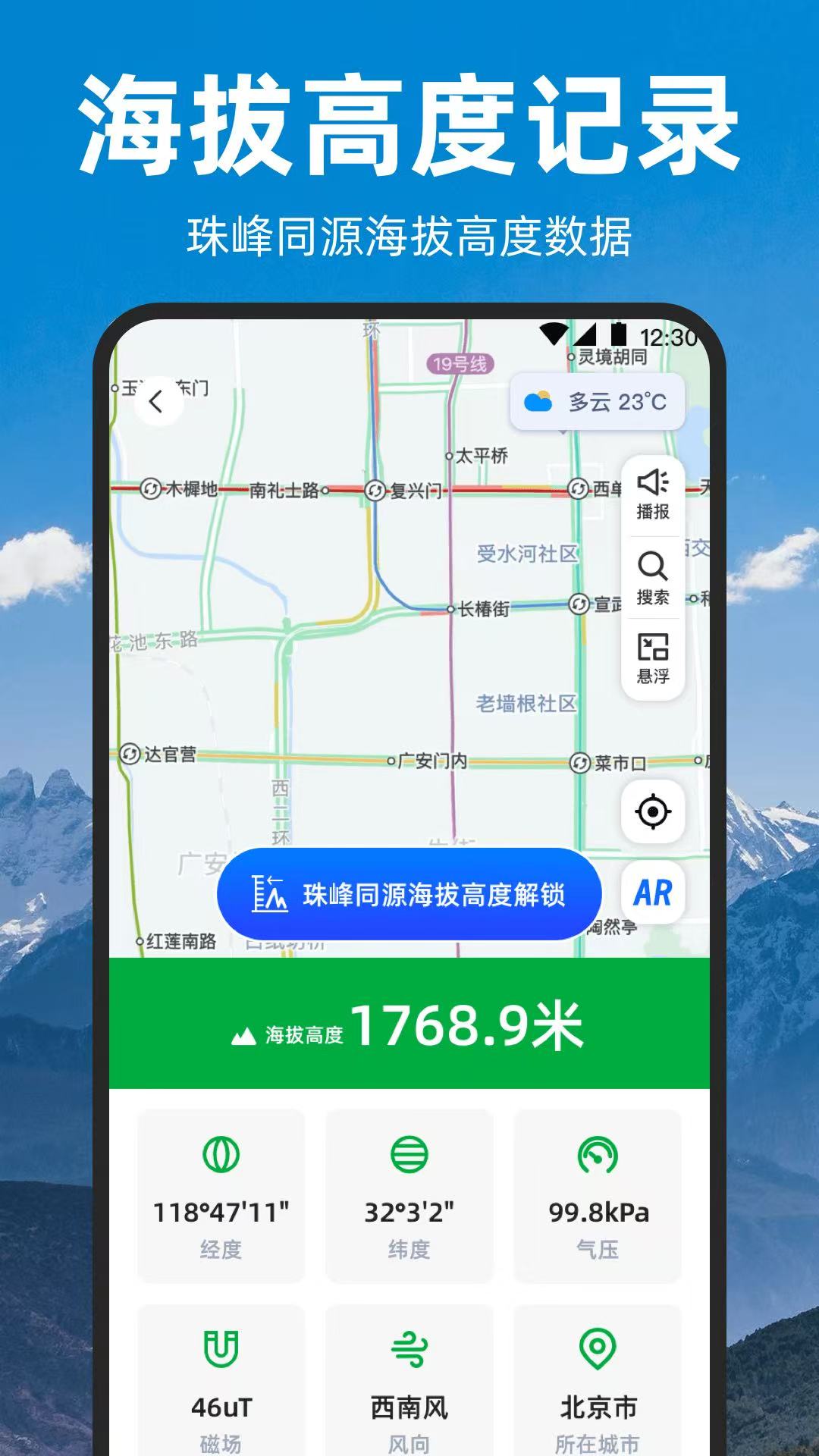 款采用GPS与气压传感器双重校验技术,不管是在城市还是野外的环境当中,都能够实现3米内的测试精度。支持海拔轨迹自动记录,会生成可视化变化曲线。还有独创的水印相机功能,拍照时会自动输入海拔和经纬度以及时间的信息。对于悬浮窗模式可以实现多任务同时进行这样,不管是在哪种场景下,都可以去切换应用即可实时查看海拔。