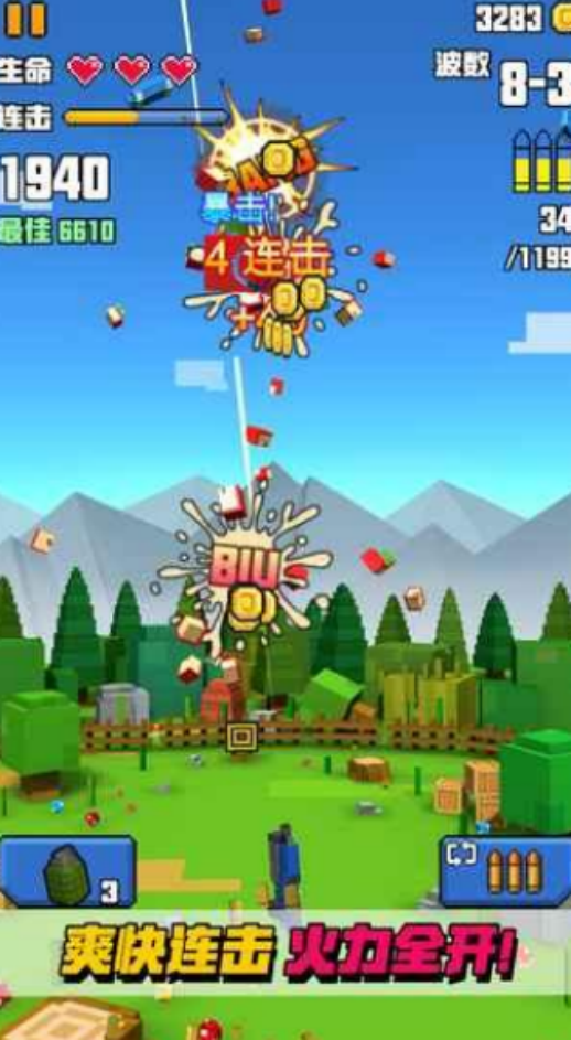 像素射击大战在这里开启玩法相当直观,画面清新又可爱,上手难度适中,对于偏休闲风格的玩家来说,特别适合,同时又融入了 Fps模式,采用竖屏操作,只需利用手指点击屏幕,要控制射击方向,即可快速点击并完成战斗。连续击中目标,就能够瞬间进入狂暴状态,这样攻击的伤害以及所收获的金币会直接翻倍。