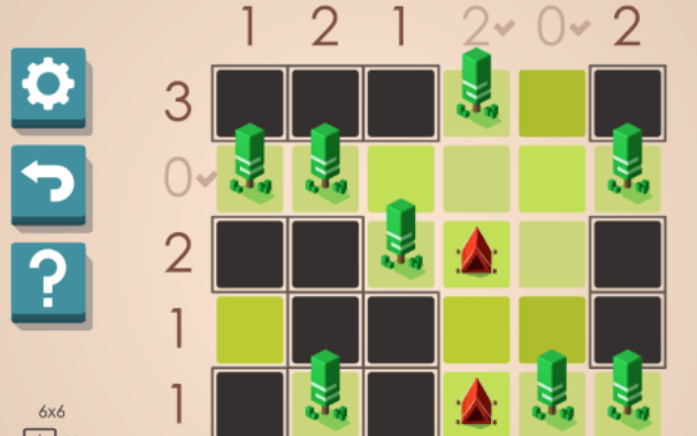 本作是款方块主题背景的单机解谜休闲游戏,游戏地图上呈现出各种各样的树木,而你则要将一顶帐篷放置在这些树木的旁边,其实游戏整体玩法跟数独差不多,需要提升自己的智慧和逻辑解决难题,放置互动性质很强让大家的智商得到了提升,将树木和帐篷进行组合的解谜闯关性质也是亮点。