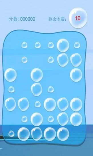 玩法围绕水滴展开:初始有10个独立水滴,将其投入圆形水珠中可使其膨胀。当向已满的水珠添加一滴水时,它会爆炸并分裂为四个飞溅水滴,扩散至相邻区域。通过精心布局,触发连锁反应,形成连续爆炸,从而获得更高分数。游戏强调策略规划与预判能力。