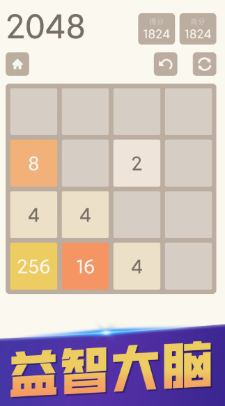 游戏在一个4×4的网格中进行,玩家通过滑动屏幕控制数字方块移动,相同数值的方块碰撞后合并成新的数字(如2+2=4,4+4=8),最终目标是合成2048。每次操作后,空白格子会随机生成新的数字块。虽然规则简单,但要避免棋盘过早填满,必须提前布局,讲究策略与节奏控制。