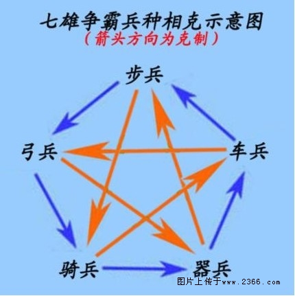 七雄争霸兵种相克,兵种克制关系示意图: