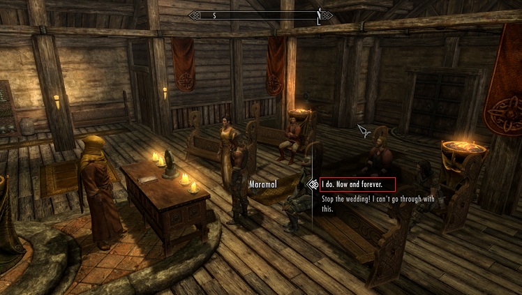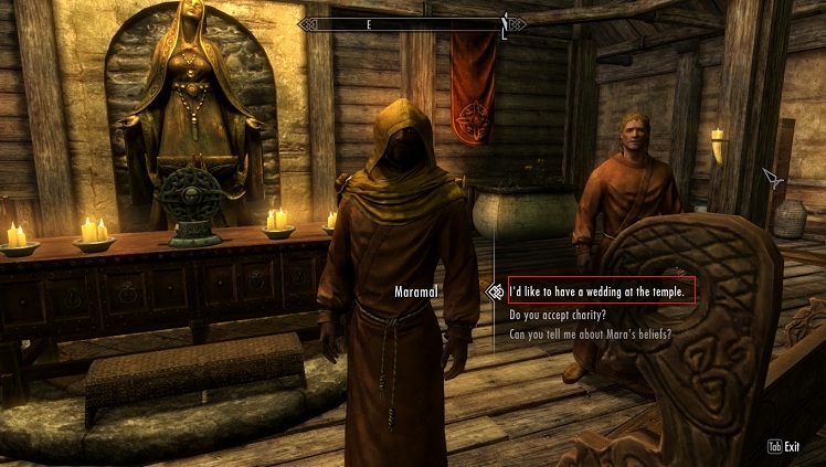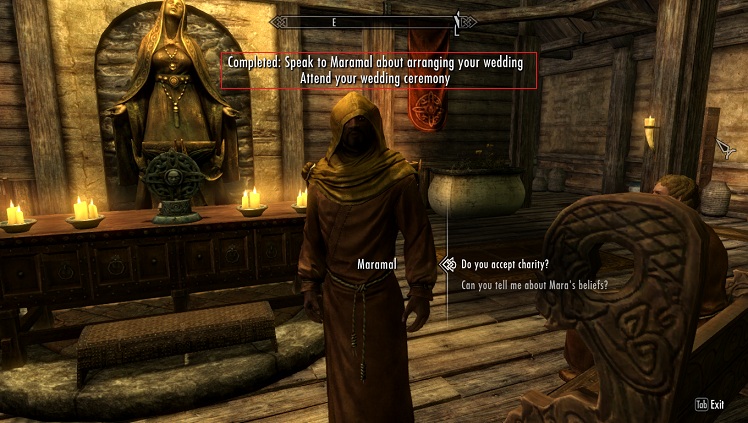回Riften找Maramal举办婚礼,他会让你午夜过来。按ESC对照一下时间,应该是在12:00PM左右。