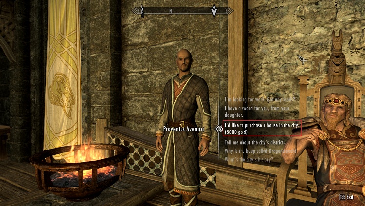 在众多对话选项中,选择图中所标注的选项,大意就是在镇子上购置·一套房子。5000G... 看来游戏里的房价也很贵。