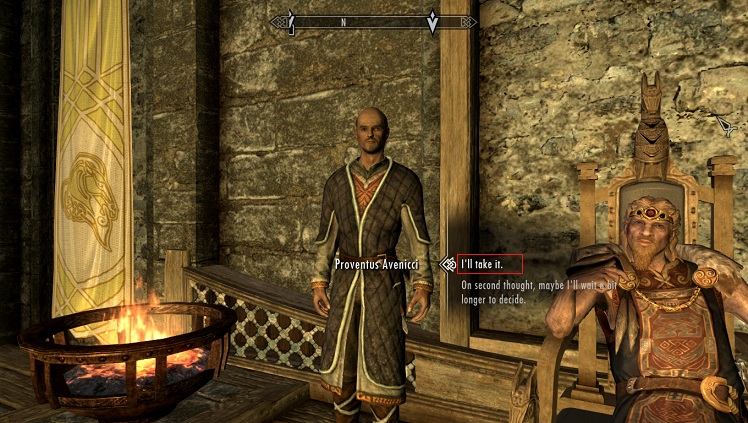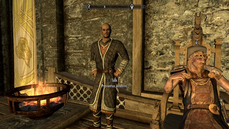 首先做完一系列新手任务,到达Whiterun,进入Jarl的宫殿Dragonsreach,和他右手边的参谋对话。