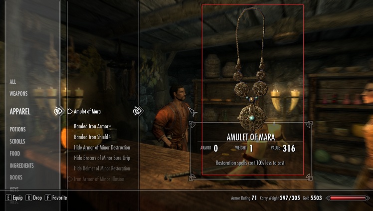 拿到这两样,就能保证娶到老婆了。200G=wife,很赚了。接下来就是回Riverwood,找到杂货店(自己取的名字)。就是门口挂一个天平的地方。