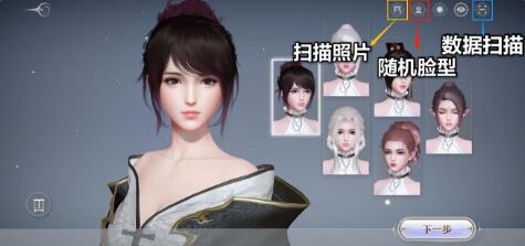 创建角色时,冒险家们会进入到这个页面~除了会看到界面系统自带的几十款精美的初始脸型之外,右上角的按键也不能忽视哦~!分别可以让冒险家们创立AI捏脸的黑科技、创建随机脸型的黑科技、以及可以扫描捏脸数据的懒人最爱