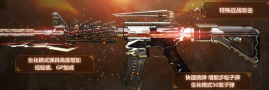 武器点评:最新的英雄级M4A1-死神,拥有极高的精准度,适合点射。同时,在生化模式中,将小幅提高人类佣兵的跳跃能力,并且主弹夹会提高至50发。