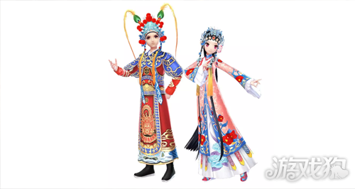 龙甲武生与俏装花旦穿上绣有栩栩如生的祥云与鲜花图腾的时装,舞动着轻盈如雁之身姿,在戏台上演绎着出彩人生。