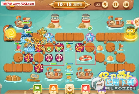 3、本关大量建造大量的船锚炸弹可以很稳的过关!