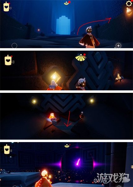 3、通过门后往下走,落地后在右侧可以看到紫色光芒的心之灵。