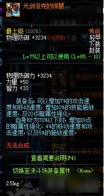镇魂曲:幽游板甲护腿(12点暗强,LV60技能+1)
