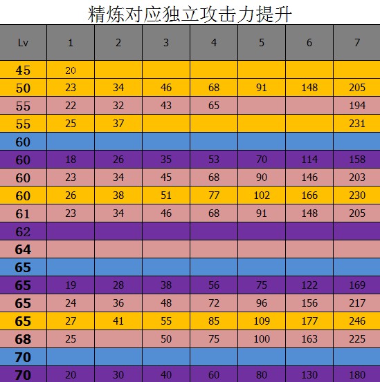 各等级武器全锻造阶段 提升独立攻击效果一览: