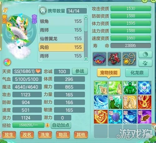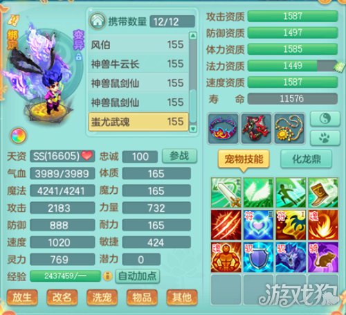 而羊力则是单法宝宝,变异6技能配合高法力资质,让许多玩家愿意培养这个宝宝。雨师和银角洗出来的资质适合做物理就打物伤,适合做法宠,就打法伤。