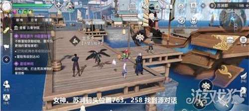 羽衣岛传送点附近接任务,然后去苏澜城梁先生书斋门前台阶处找说书人(做饭那里),再然后点历程里面去沉船的传送,在传送点附近和源对话,对话之后再分别去三生树、苏澜城码头(贪婪岛传送点那)、灵虚白猿神殿广场、平海镇钓鱼台(在平海镇和莹川的桥上)找源,全部找完后去迷雾湿地后面的妖精旅社和源对话,最后来到苏澜城大桥完成冒险。