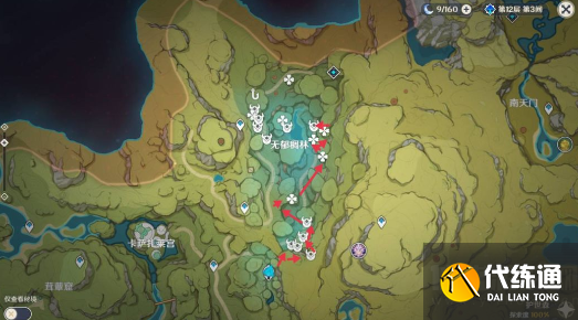 首先来到下方七天神像处,看向地图北方,向前直走,然后贴着右边墙壁收集(右边有洞穴的时候进去能采集到一个,然后原路返回继续贴着墙壁)