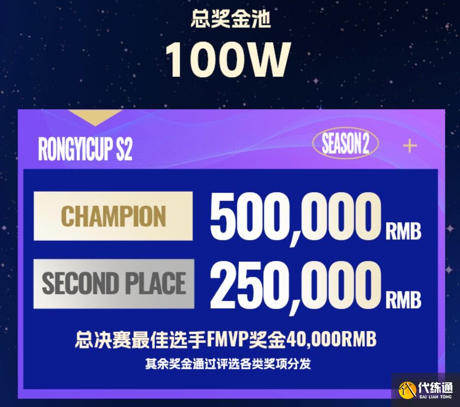 冠军可获得50万元奖金,亚军则收获25万元,单场FMVP还有4万元奖金!