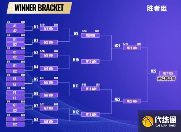 16支战队(13支传奇战队+3支外卡赛晋级队)通过 BO1 单败淘汰制抢夺晋级资格。