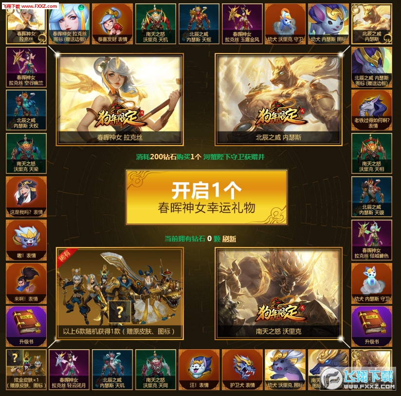 可以获得6款炫金皮肤中的随机1款(赠原皮肤、图标)