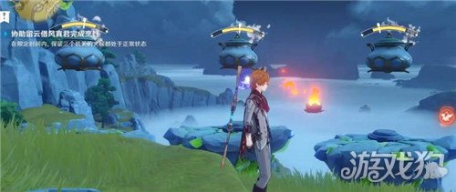 2、任务要求是协助留云借风真君完成烹饪,开始后会出现三个火炉机关,但只有一个火源,通过地面上的左右两个按钮可以控制火源的位置移动;