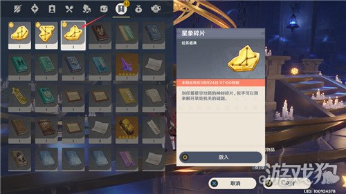 拿到3个星象碎片后,来到中间的放置器中选择放置上方