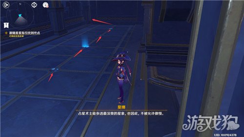 过完剧情后,触摸旁边的占卜球,进入副本后往右,跟随地上的星光指引走,直到遇上地上的星星,改为跟随星星走,注意不要跟丢。