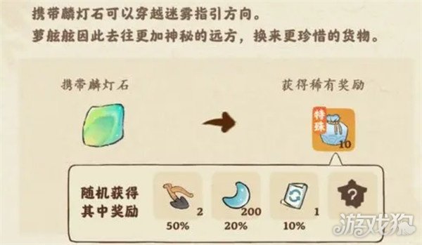 4、用途:用于驱散湖面雾气,解锁湖面,搭建水产作坊,收获水产,作为鲁公神鱼的货物。