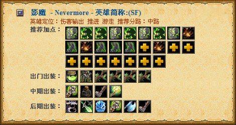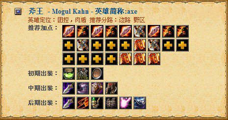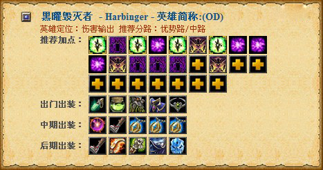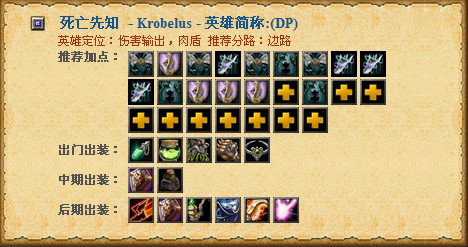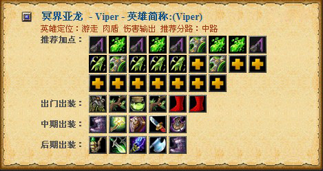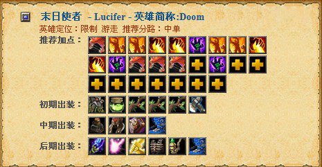 最新版DOTA英雄出装表这可能目前最6.71b所有英雄的出装表中最全面的一套了,DOTA英雄出装表教你如何对技能加点升级,初期出门装,中期装和后期神装所有的资料,希望对所有的DOTA用户有所帮助。具体的比赛需要玩家们针对对手不同的出装,但是对一个英雄定位理解才是出装根本目的性的保证。