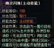主动技能:幽灵闪现:攻击敌方一整行目标造成150%法术伤害,并使目标消极(无法获得怒气)同时减少目标50%命中值,持续2回合,伤害百分比根据船员智慧值提升。
