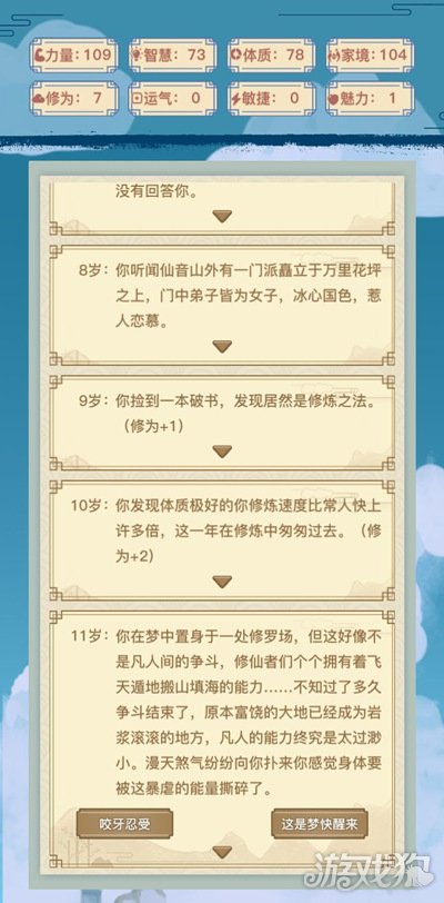 在雷池遇到修魔者直接攻击。修炼时遇到杜杰者原地休息,劈你的时候,随便选一个,都不会死,还能加运气和修为。后期去地方,别去活佛种,贼坑手残选了立马点退出。不然会死。