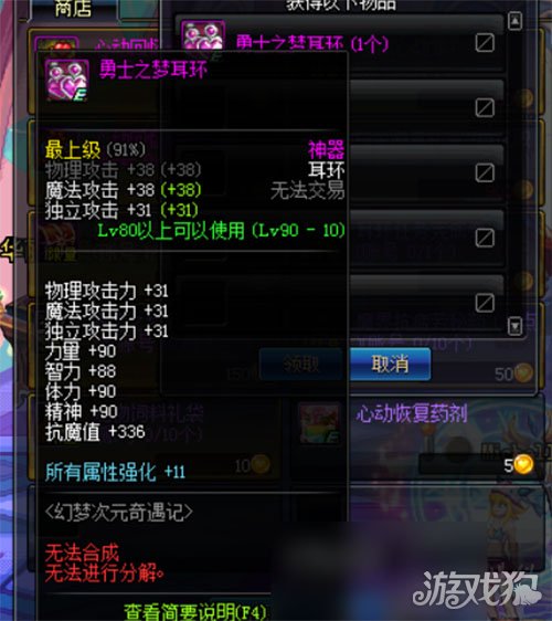 除此之外在npc商店还可以兑换白金徽章,不过是自选职业而不是转职,所以说米雪拿着一个炫纹强压的白金徽章欲哭无泪啊QAQ,因为攻略所有人物后已经可以获得所有人物的卡片和相册了,两者也都是账号绑定的,所以完全没有必要再去兑换一个了~不过有小号的小伙伴们可以选择入手个耳环任务完成券和耳环,先不说耳环任务对于不喜欢清理主线任务的小伙伴们来说很麻烦,这次给的耳环属性也是还可以的,远远高于彩虹耳环,当然和史诗耳环还是没法比啦XD不过至少是省了300w~