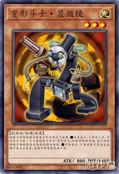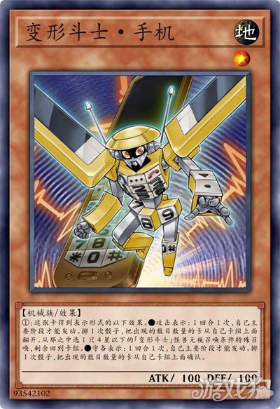 这张卡得到这张卡的表示形式的以下效果。●攻击表示:1回合1次,可以从手卡把1只4星的名字带有「变形斗士」的怪兽特殊召唤。这个效果特殊召唤的怪兽在结束阶段时破坏。●守备表示:只要这张卡在场上表侧守备表示存在,这张卡的等级变成4星。