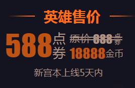 英雄售价:588点券(原价688点券)【上线五天内限时出售】