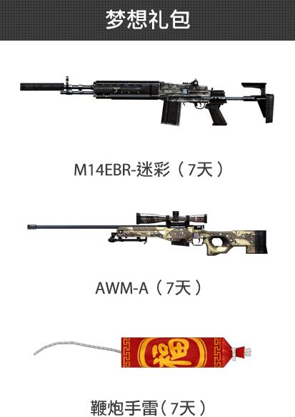 4.梦想礼包奖励有迷彩7天、awm-a7天等武器