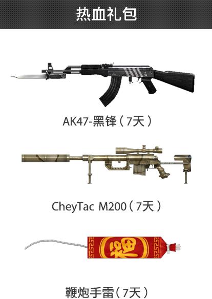 2.热血/礼包奖励有ak47黑锋、鞭炮手雷等武器