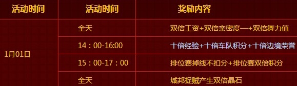 元旦当天15点整点在线,即可获得20个鲜花卡、5个城邦联赛双倍卡!