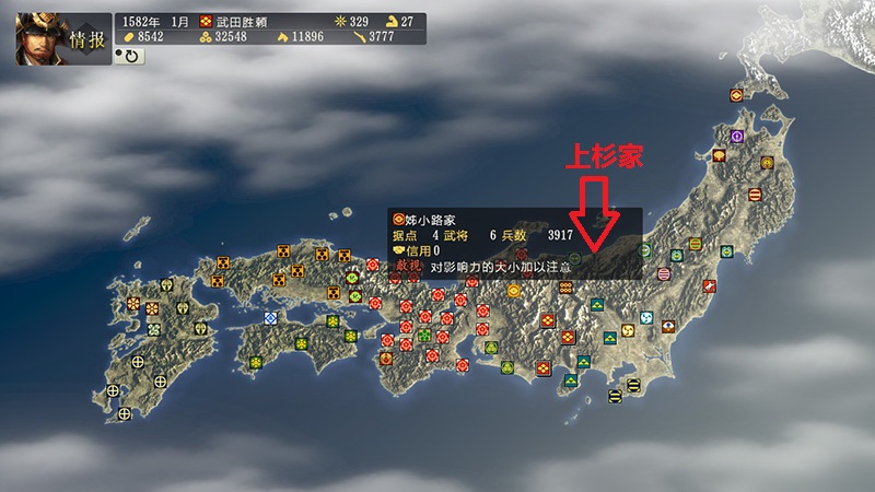 而本方的盟友上杉家却远离冲突的核心地带。