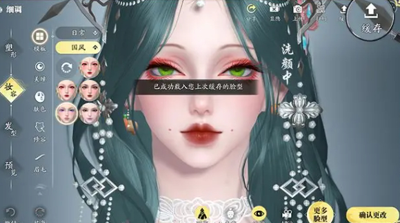 2、点击右上角的缓存按钮,之后界面会提示【已成功缓存当前脸型】。
