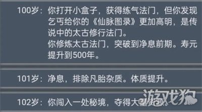 之后如果达到100岁即可触发事件,玩家获取仙脉图录,开启更加强大的修仙之旅。