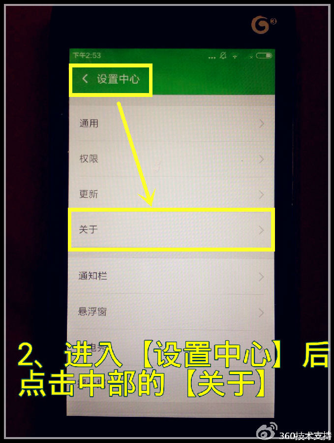进入【设置中心】,即可看到位于屏幕中部的【关于】。没错,就是继续点击【关于】(操作示意如下图);