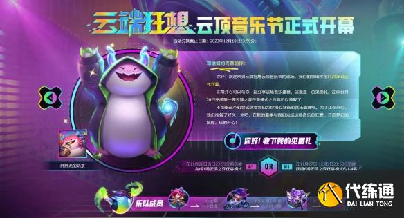 活动奖励:K/DA 云顶音乐厅 棋盘、迪斯科 胖胖龙、混音大师 胖胖龙等。