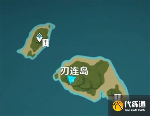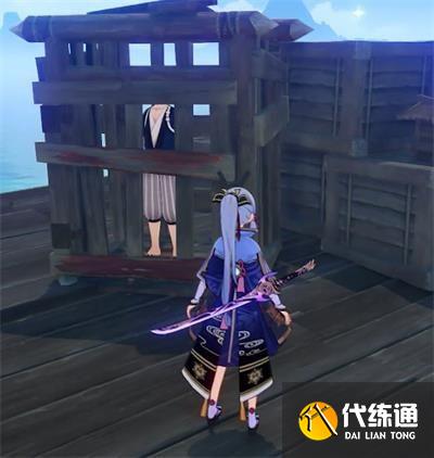 2、前往刃连岛下图蓝色箭头位置救出柴门二郎。在附近的树上可以找到牢门钥匙。悄悄说一句,可以先不着急打开牢门救出他。可以先和他多对话几次,交流的信息很有意思。