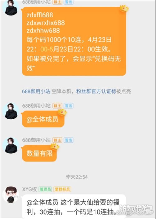 每个码1000个十连,4.23日22:00——5.23日22:00生效